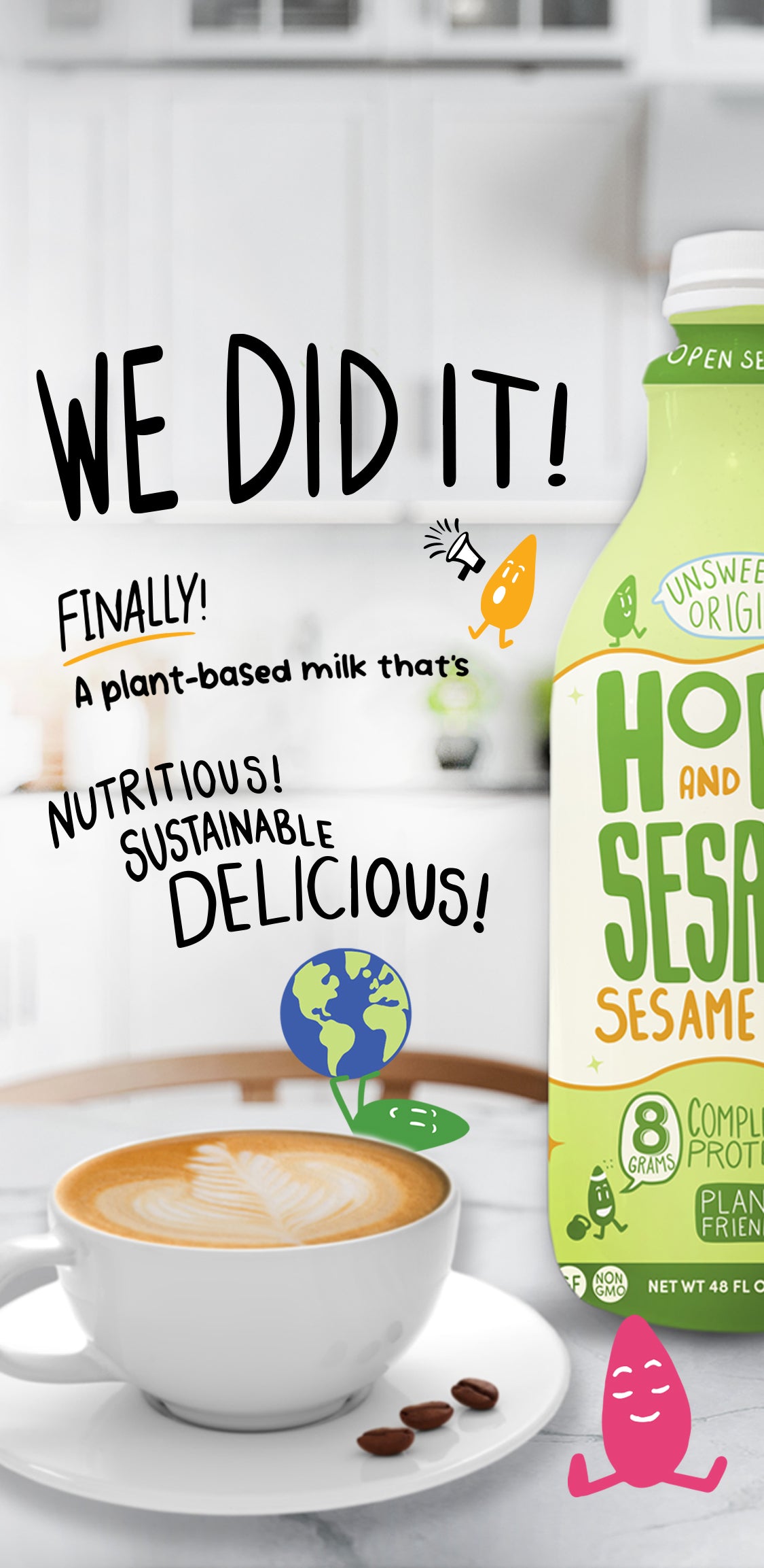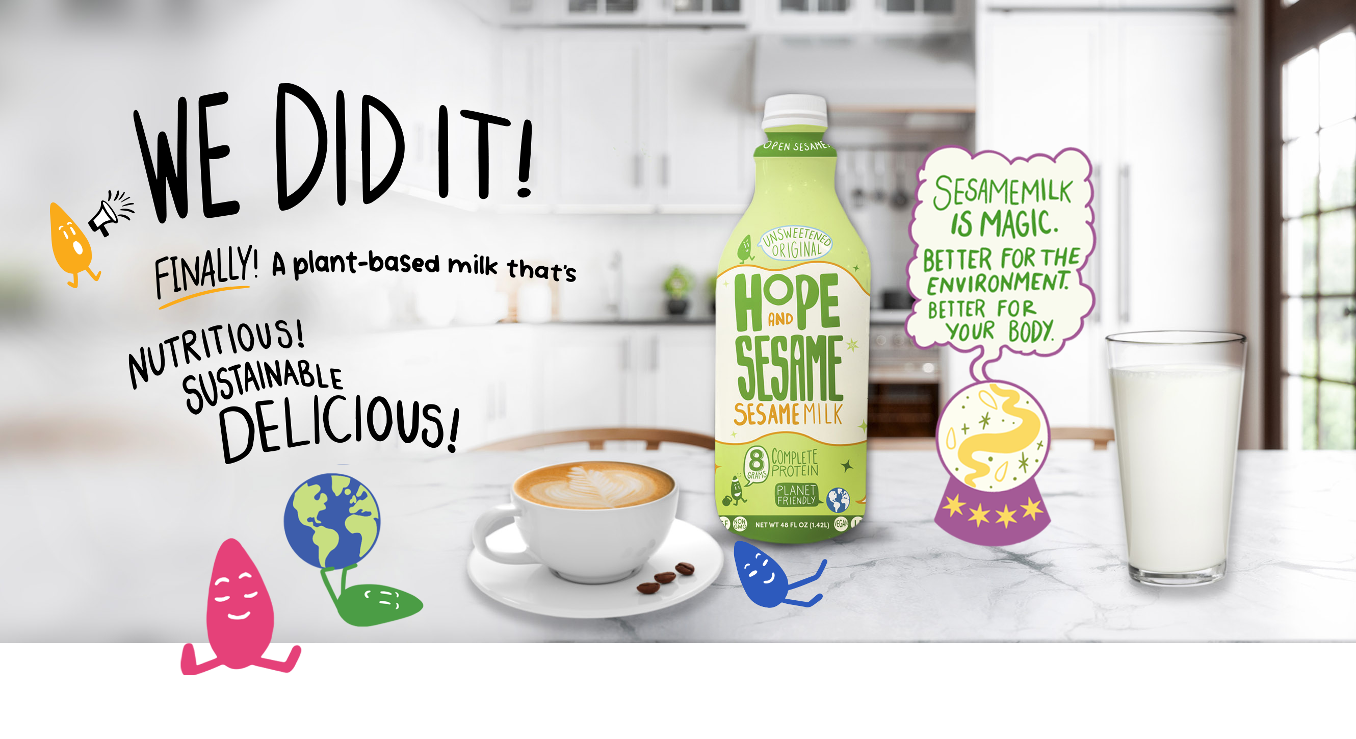 Hope and Sesame was started by a group of friends and family to bring more magic to plant-based foods and beverages, and is part of The Planting Hope Company, Inc., a women-led and women-managed company with commitments to nutrition, sustainability and inclusion.